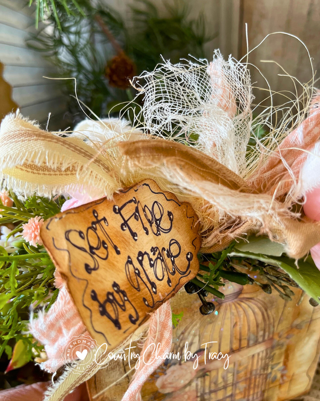 -Hand-lettered tag: “Set Free by Grace”